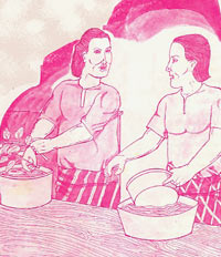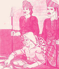 Raja juga selalu bimbang sekiranya ada orang mahu meracuni baginda. Sesungguhnya ini amat mustahil kerana baginda mempunyai dua orang tukang masak yang sangat jujur. Seorang ditugaskan untuk membasuh sayur-sayur bayam sementara seorang lagi yang sangat pandai memasak kari disuruh memasak kari bayam ini untuk santapannya. Kedua-dua tukang masak ini bersahabat baik. |